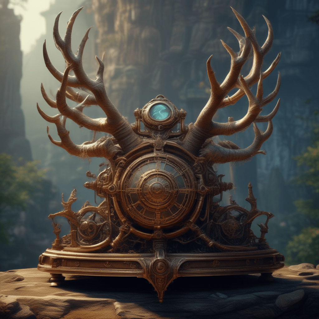 The divine antlers of Murganta are living relics of cosmic harmony, forged from the sacred branches of the World Tree, embodying the divine magic of growth, renewal, and balance, waiting for a worthy bearer to unlock their eternal power.