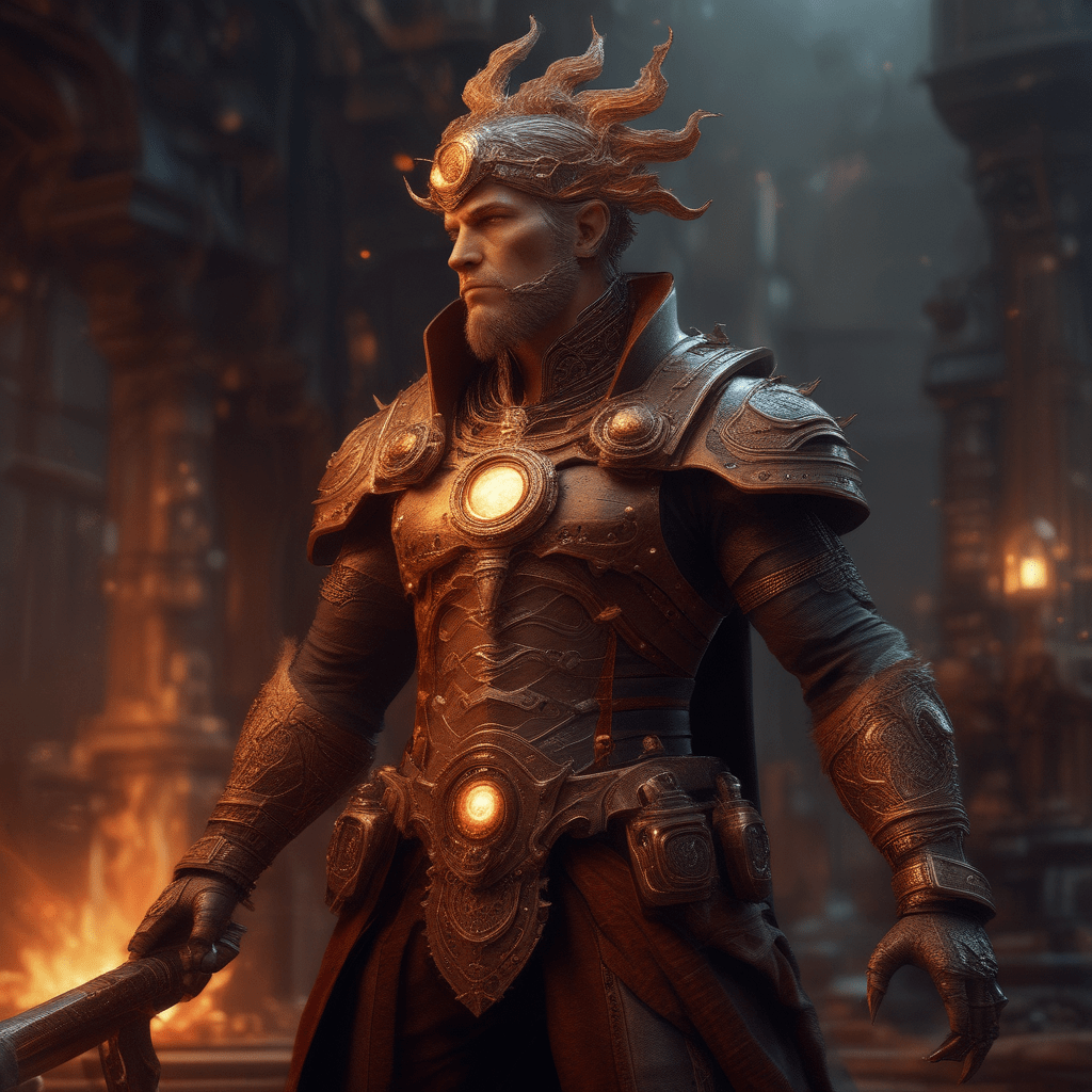 He is revered as the eternal blacksmith of the divine, the master of divine relics, and the guardian of the sacred forge – a force of divine fire that can forge salvation or unleash chaos.