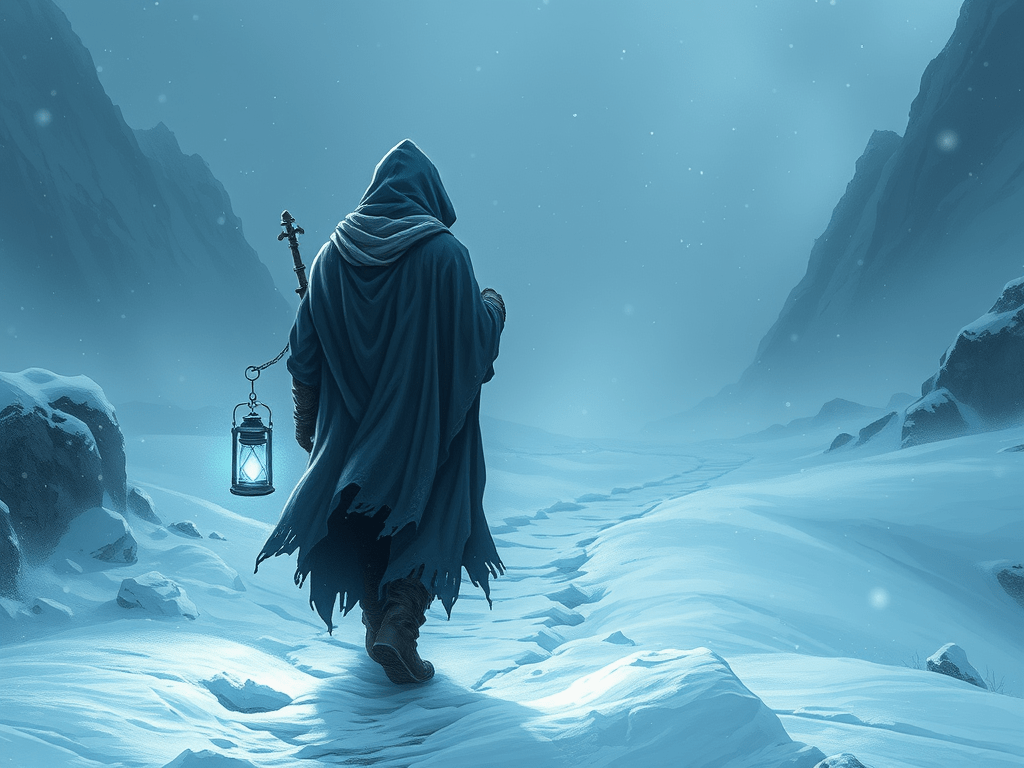 Symbol: A lantern of blue flame carried by a cloak wanderer upon icy mountain path