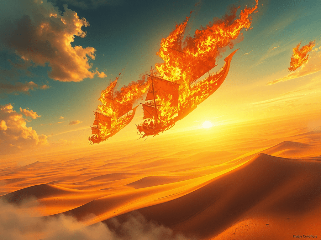 Ships of fire across the desert sky, bearing the banners of the bold.