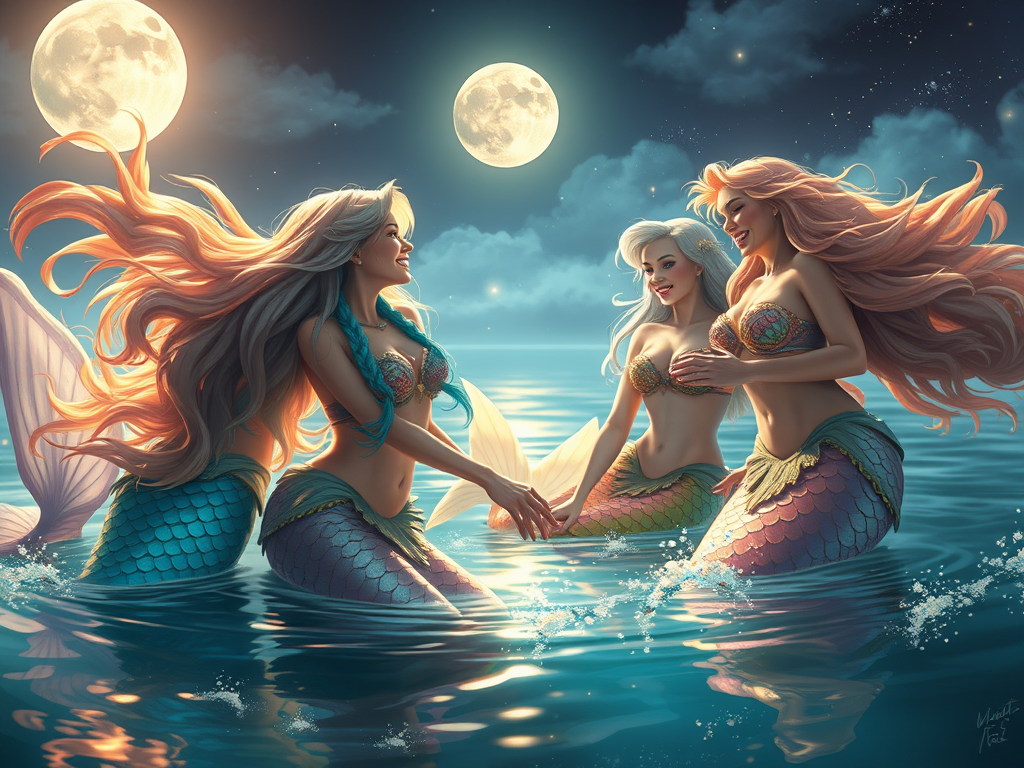 The mermaids gather at the Moon's Well, their laughter rippling across the deep.