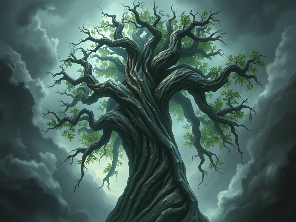 The King of Veins is carved from living bark, his crown of branches heavy with time.
