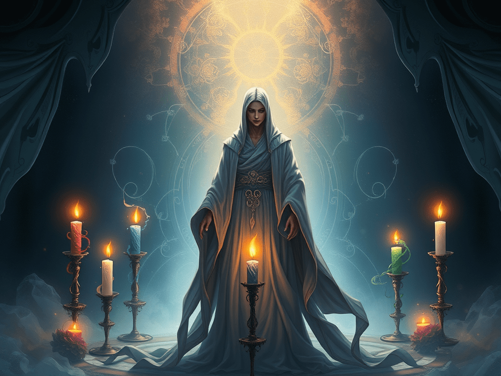 Before their first reading, they must light five candles - red for Flame, blue for Tide, green for Vein, white for Whisper, and violet for Shadow - and speak the Oath of Balance: