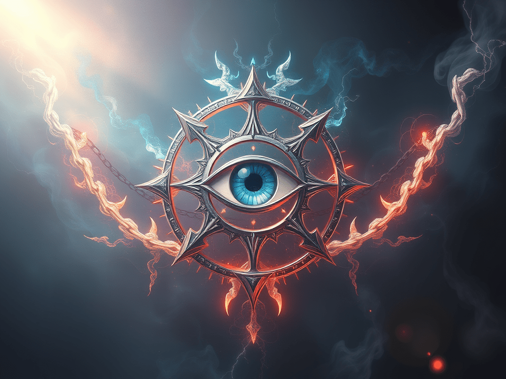 Sigil: A fractured halo encircling an open eye, bound by four aetheric chains