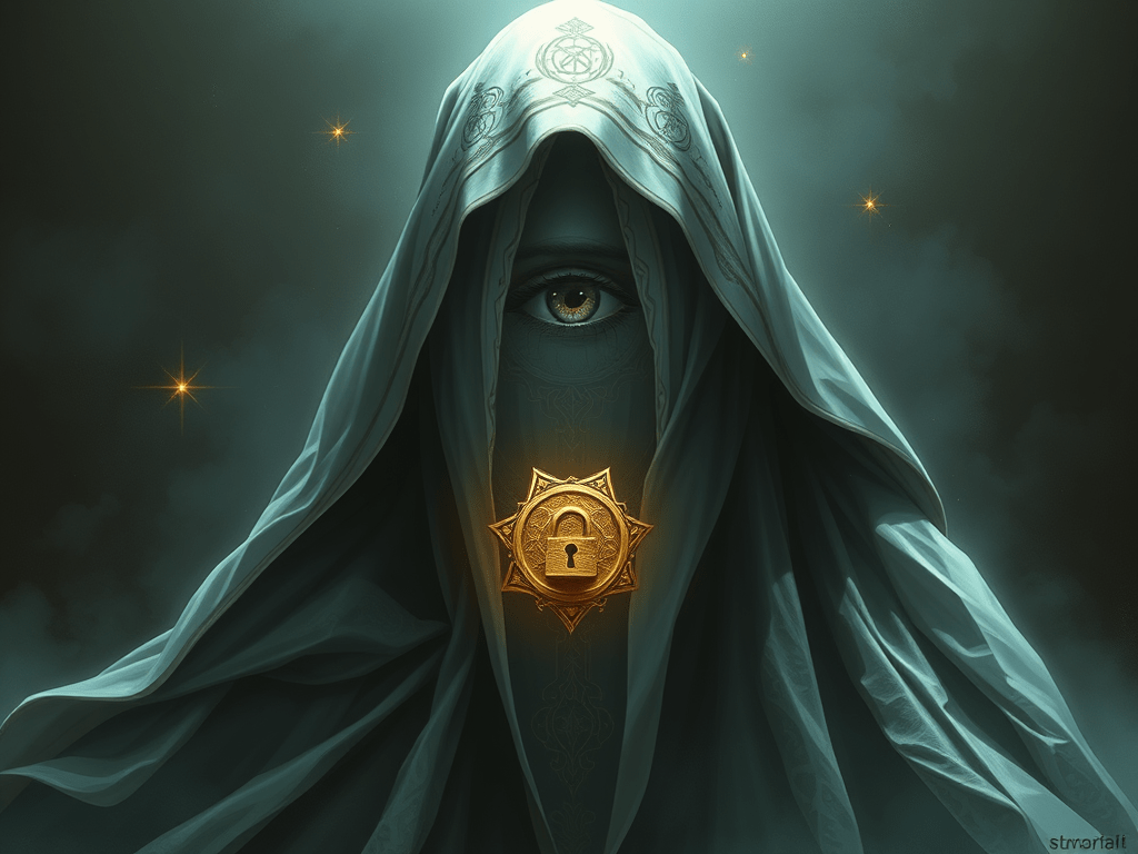 Sigil: An eye half-covered by a veil of sigils, its pupil replaced by a closed lock